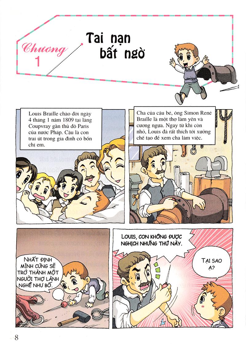 Who? Chuyện Kể Về Danh Nhân Thế Giới - Louis Braille Với niềm khát khao được đọc sách, mở rộng tri thức, khi mới 15 tuổi, Louis Braille, một thiếu niên mù đã phát minh ra hệ thống chữ nổi. Sáu dấu chấm nhỏ đã trở thành ánh sáng tri thức, làm thay đổi cuộc đời của những người khiếm thị. Các bạn nhỏ hãy noi gương nhà phát minh chữ nổi, luôn hành động vì những người có số phận thiệt thòi và phấn đấu không ngừng để đạt được ước mơ nhé! "Dù không còn nhìn thấy gì nhưng bạn hãy luôn nỗ lực hết m.ình" - Louis Braille