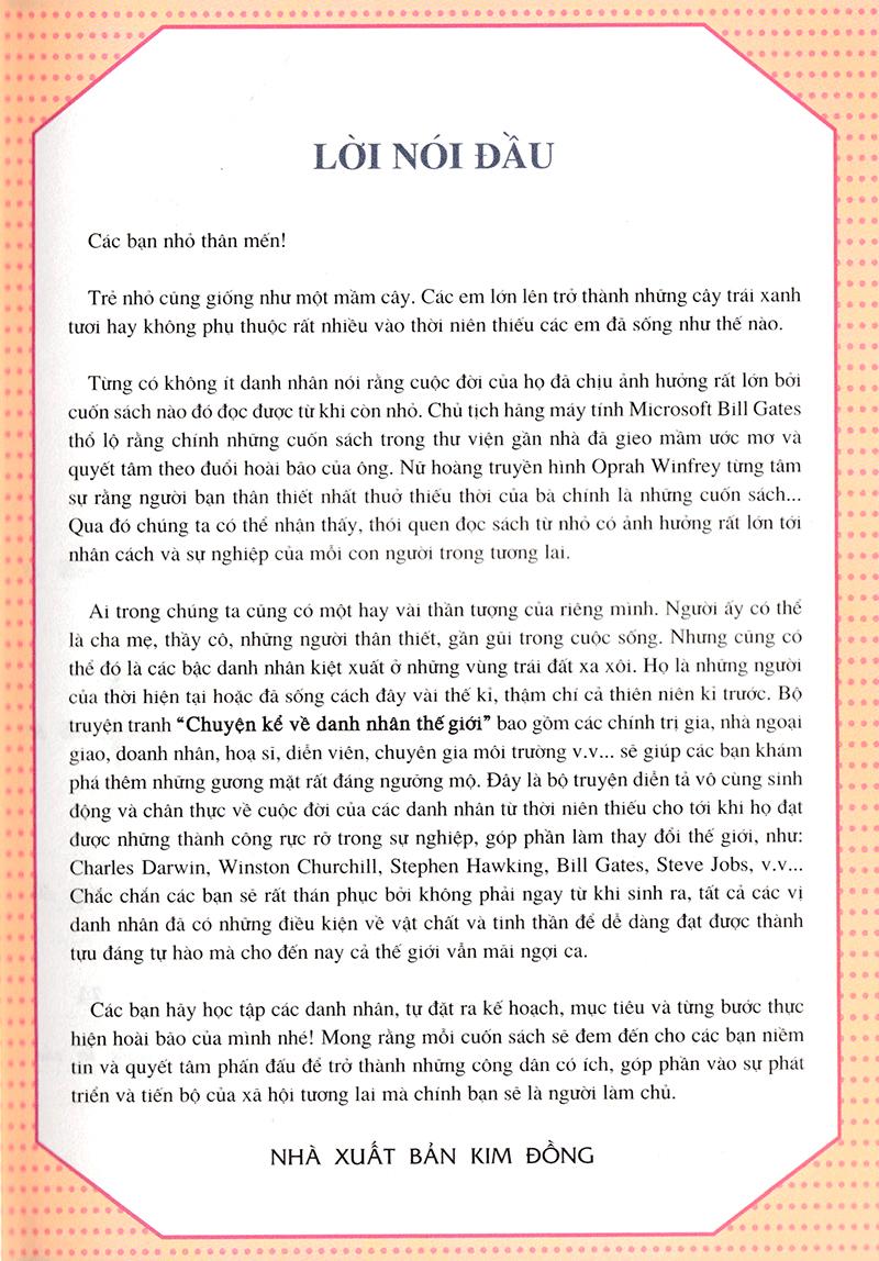 "Who? - Chuyện kể về danh nhân thế giới" là bộ truyện thú vị kể về cuộc đời của các danh nhân nổi tiếng nhất thế giới, từ thời niên thiếu cho đến khi họ đạt được những thành công rực rỡ trong sự nghiệp. Những câu chuyện về cuộc đời và sự nghiệp vĩ đại của các danh nhân sẽ đem đến cho các em những ước mơ và hoài bão cao đẹp! Bộ tranh truyện WHO? Chuyện kể về danh nhân thế giới - người bạn thân thiết của thiếu nhi.