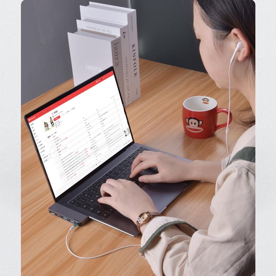 - Giao diện: USB 3.0x2 + HDMI + Giao tiếp âm thanh 3.5mm + Type-C. Nghe nhạc mọi lúc mọi nơi có thể kết nối với tai nghe/