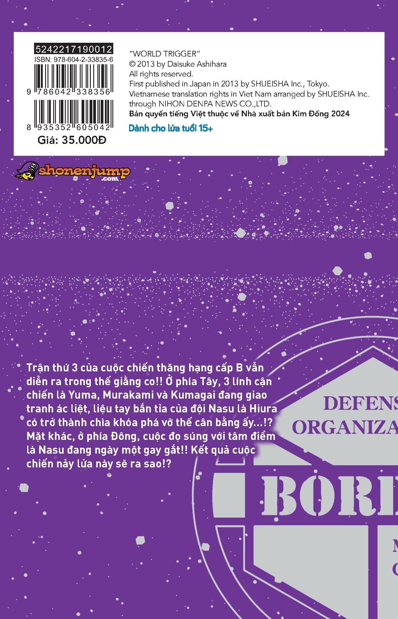 World Trigger - Tập 12 Trận thứ 3 của cuộc chiến thăng hạng cấp B vẫn diễn ra trong thế giằng co!! Ở phía Tây, 3 lính cận chiến là Yuma, Murakami và Kumagai đang giao tranh ác liệt, liệu tay bắn tỉa của đội Nasu là Hiura có trở thành chìa khóa phá vỡ thế cân bằng ấ!? Mặt khác, ở phía Đông, cuộc đọ s.úng với tâm điểm là Nasu đang ngày một gay gắt!! Kết quả cuộc chiến nảy lửa này sẽ ra sao!?