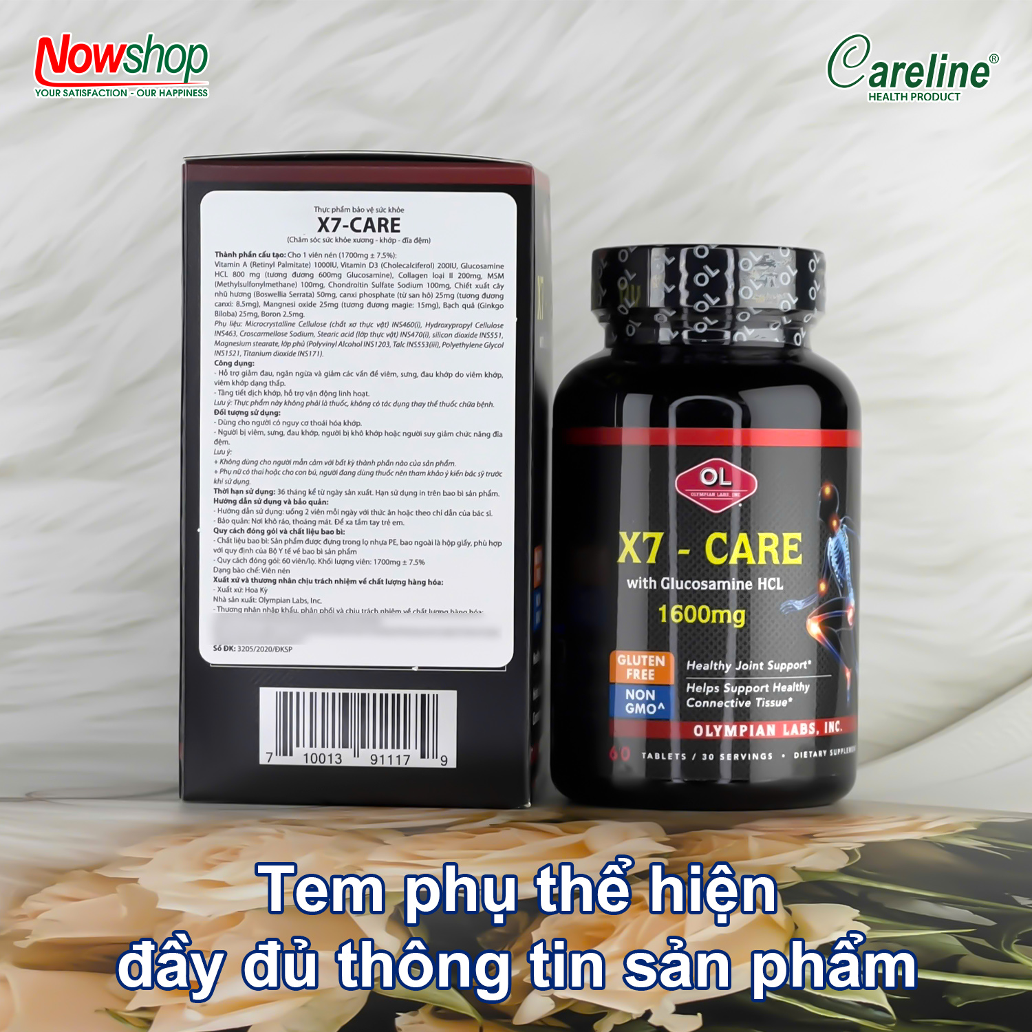 Viên uống xương khớp X7-CARE Olympian Labs – Giải pháp toàn diện cho người lớn tuổi & người vận động nhiều – Không lo đau khớp, cứng khớp! Glucosamine HCL 1600mg – Hỗ trợ phục
