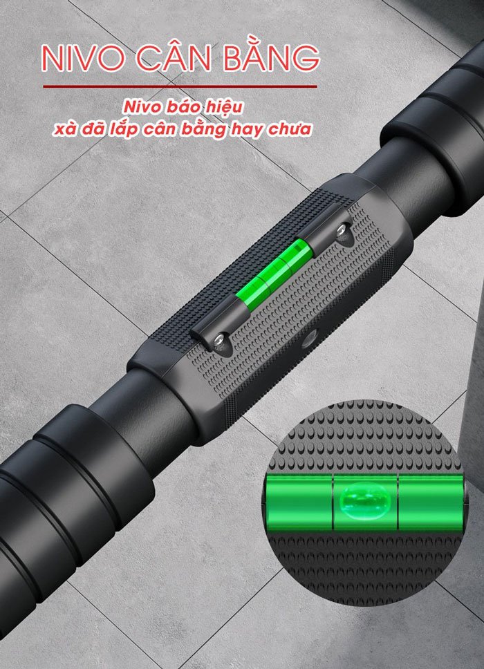 Mô Tả Sản Phẩm: Xà đơn gắn cửa treo tường Thăng Bằng có khóa chống xoay + Nivo cân bằng xà THANH TẬP XÀ ĐƠN TREO TƯỜNG THĂNG BẰNG