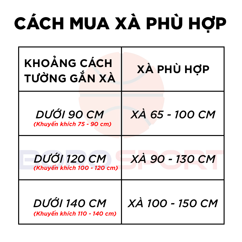 - Trọng lượng lên xà tối đa: 150kg. Ưu điểm của sản phẩm xà đơn treo tường điều chỉnh