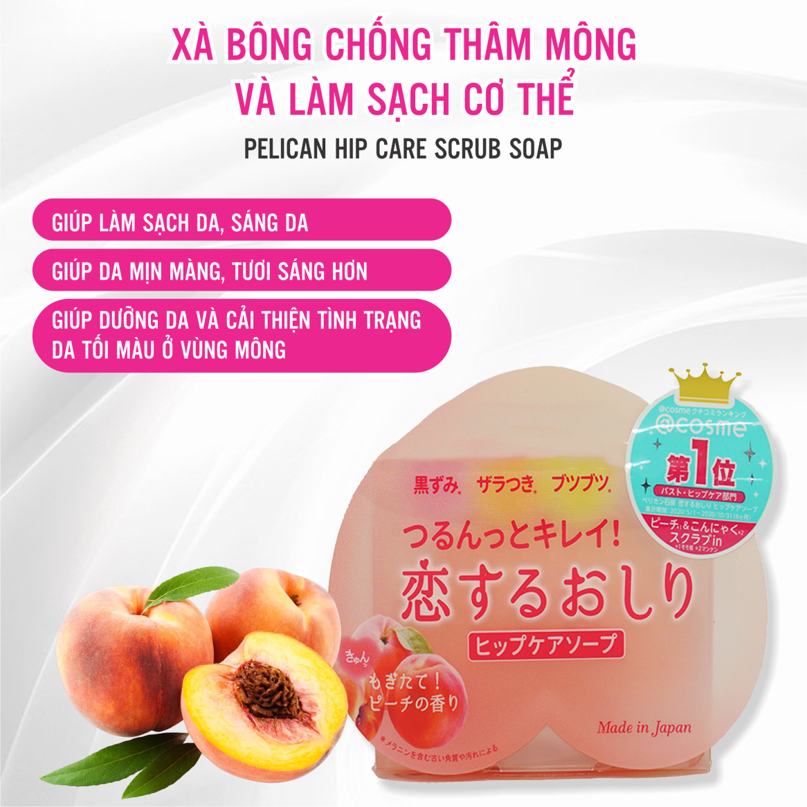 Xà Phòng Thâm Mông Pelican 🌸FREESHIP🌸 Xà Bông Cục Hỗ Trợ Mờ Thâm Mông Pelican Hip Care Soap Nhật Bản