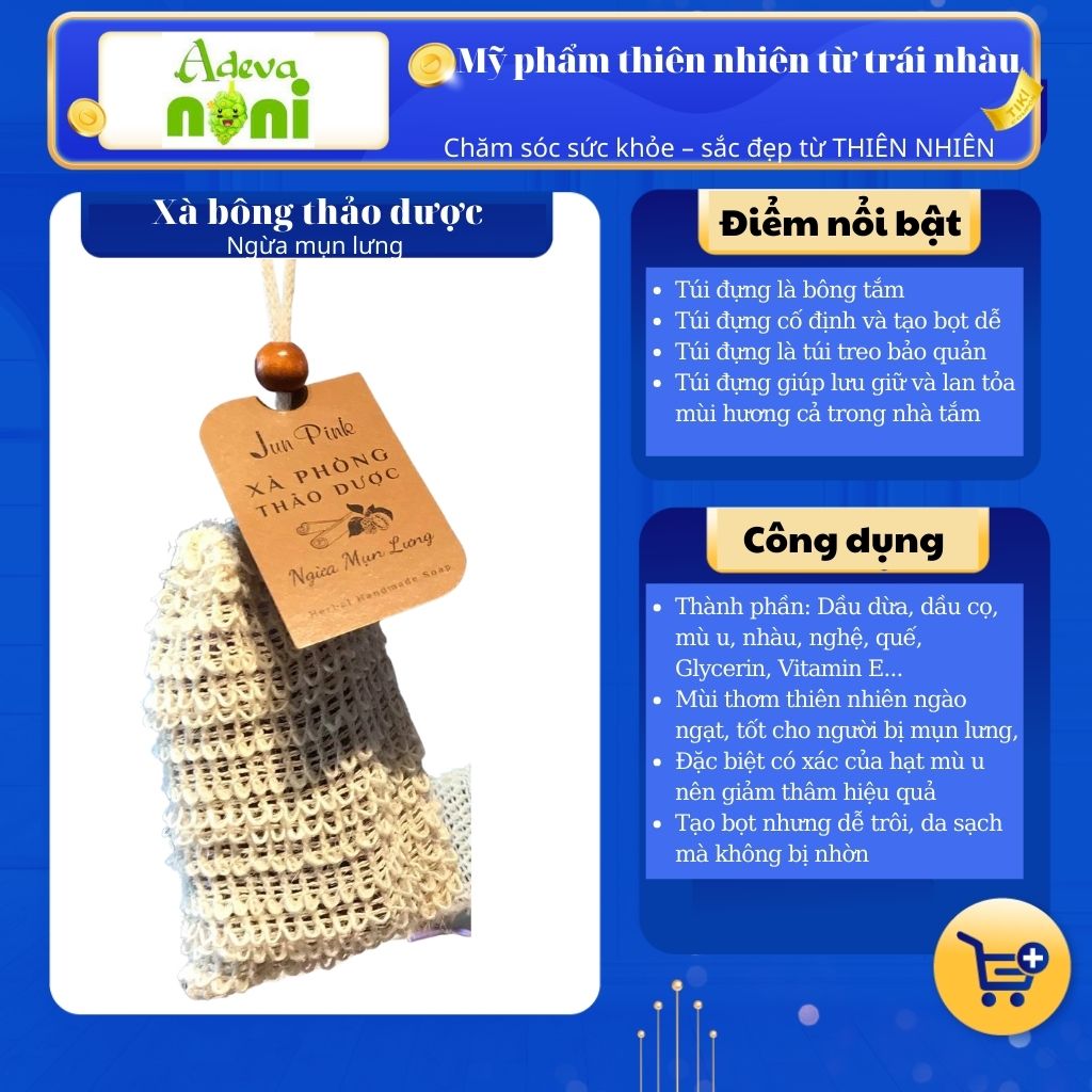 Xà phòng ngừa mụn lưng Adeva noni được làm từ các nguyên liệu thiên nhiên Xà phòng handmade còn giữ vẹn nguyên Glycerin tự nhiên được sinh ra từ quá trình xà phòng hóa Xà