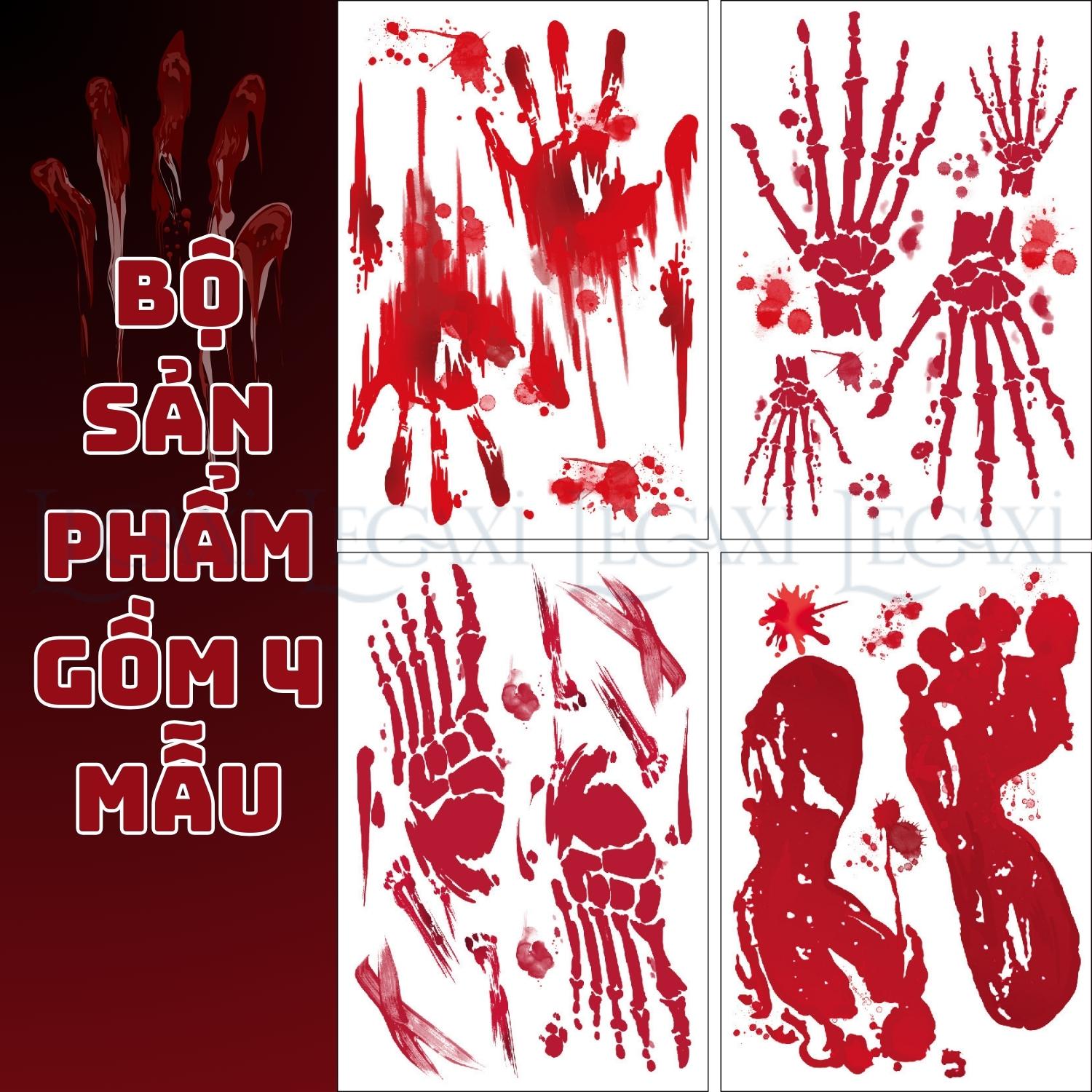 ✨Xăm dán kinh dị trang trí nhà cửa Halloween bàn tay máu vệt máu dấu chân máu Legaxi