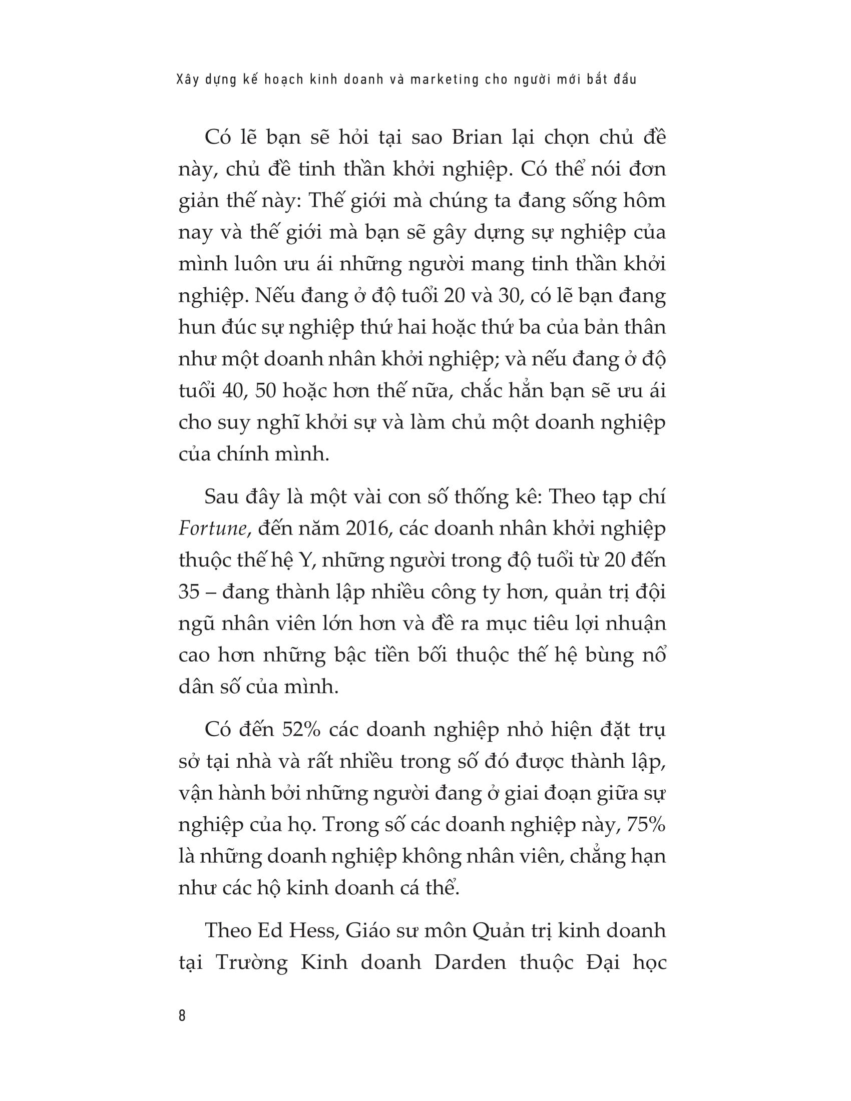 Trong cuốn sách « Xây dựng kế hoạch kinh doanh và marketing cho người mới bắt đầu », Brian sẽ giúp bạn nắm vững những ý niệm hay nhất về thành công cá nhân, giàu có, hạnh phúc và viên mãn; đồng thời giúp bạn tiếp xúc với các ý tưởng sáng tạo nhất, thịnh hành nhất và quan trọng hơn cả là đã được chứng minh về phương pháp để trở nên thành công.
