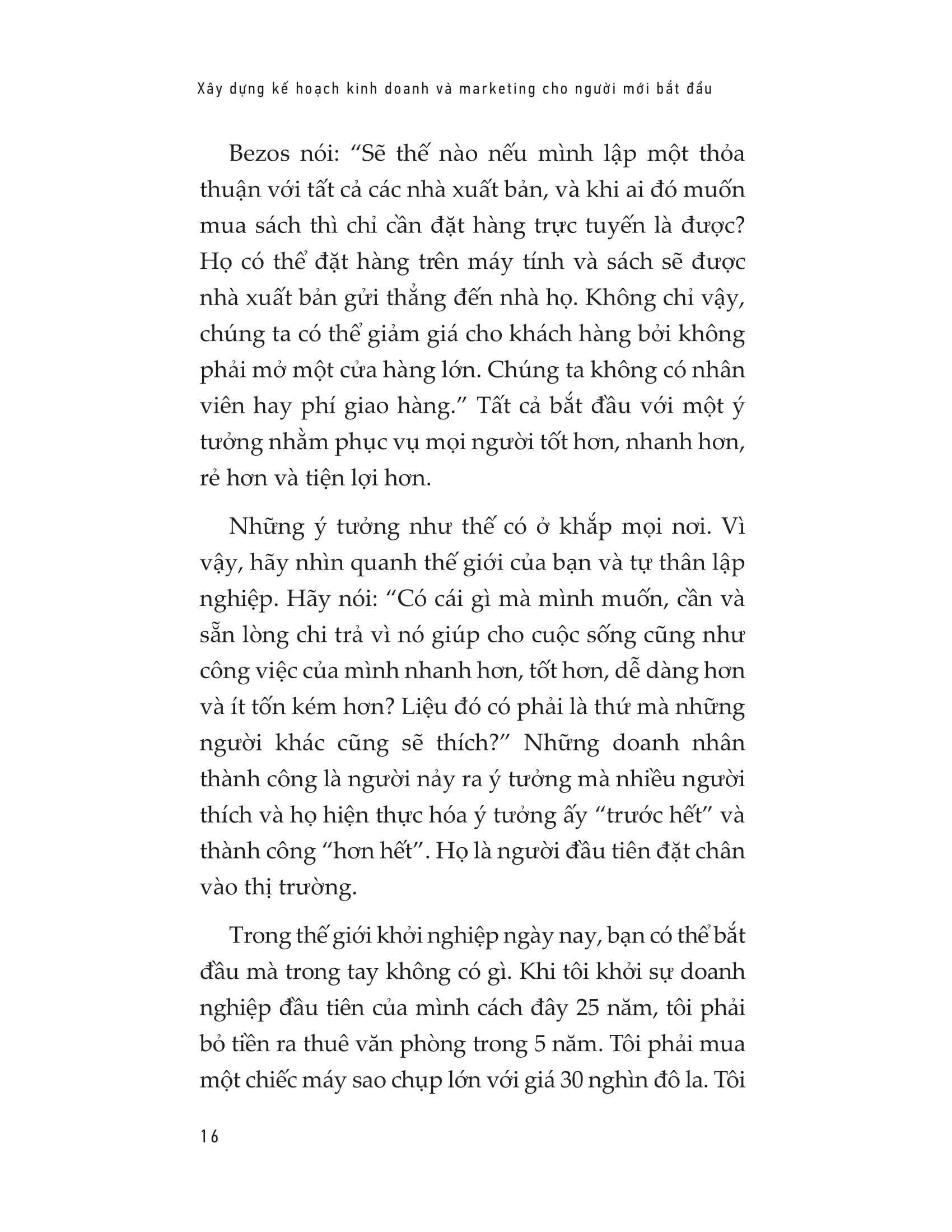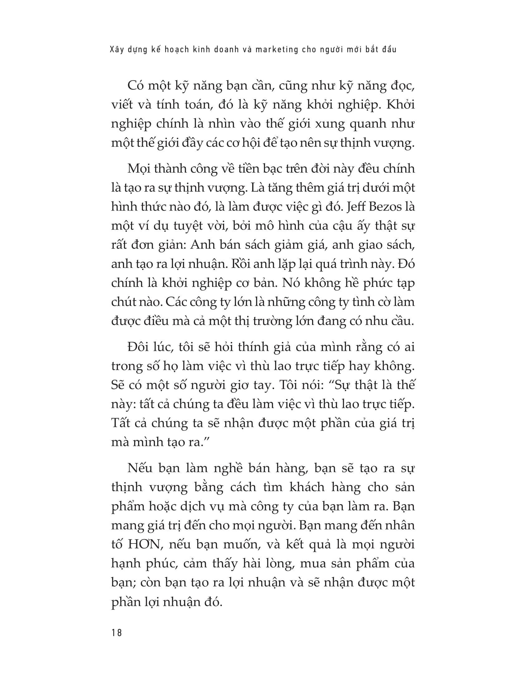 Việc bạn có trở nên giàu có hay không phụ thuộc vào chính những nỗ lực của bản thân bạn, bằng cách xác định chính xác bạn muốn gì, viết những điều đó ra, lập kế hoạch, bắt tay vào thực hiện và theo đuổi chúng cho đến khi bạn thành công. « Xây dựng kế hoạch kinh doanh và marketing cho người mới bắt đầu » sẽ giúp bạn có được cái nhìn sâu sắc nhất về thành công cá nhân, giàu có, hạnh phúc và viên mãn. Hãy quyết định chính xác điều bạn muốn là gì rồi bắt đầu, và không bao giờ bỏ cuộc cho đến khi thành công.