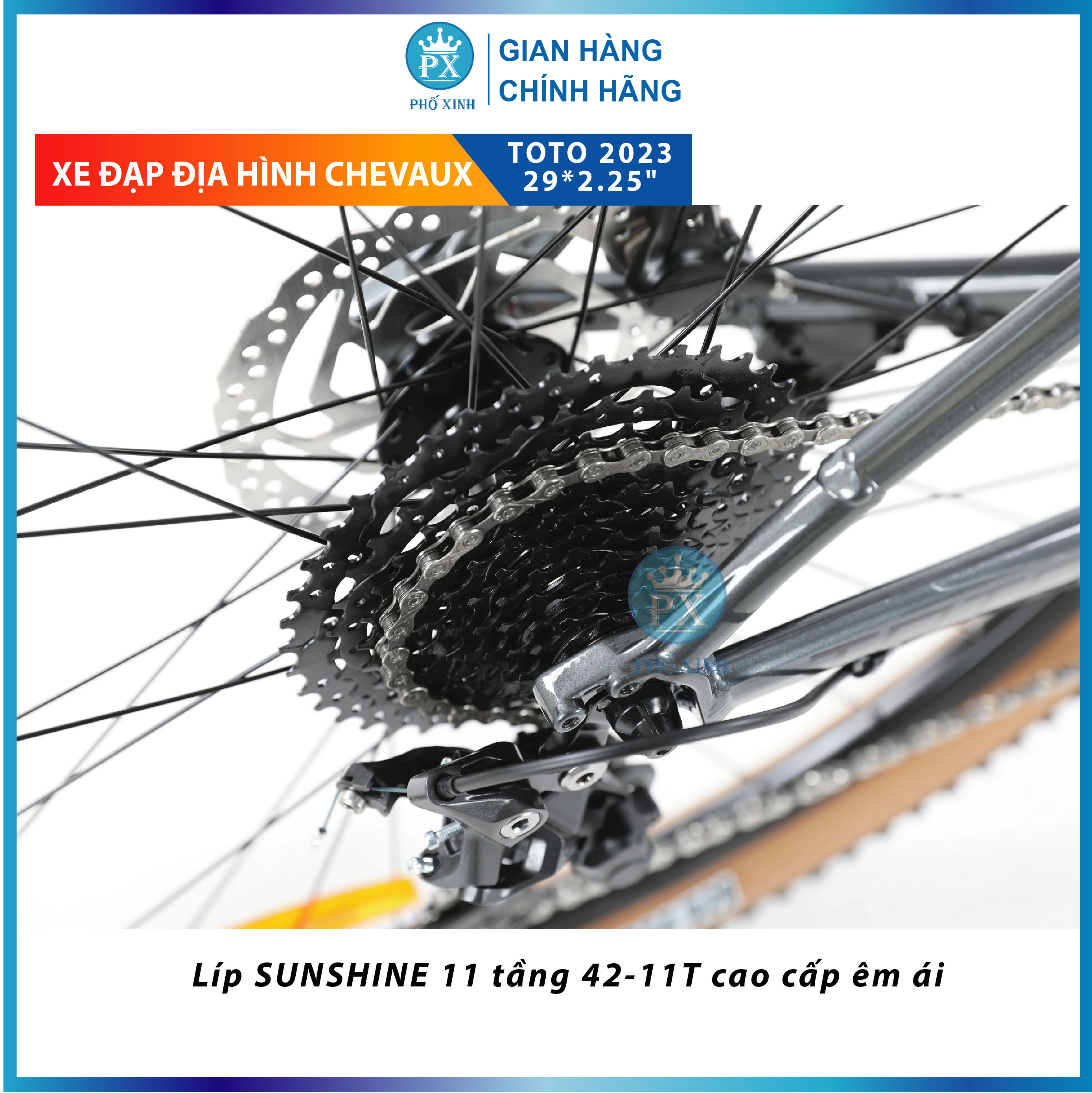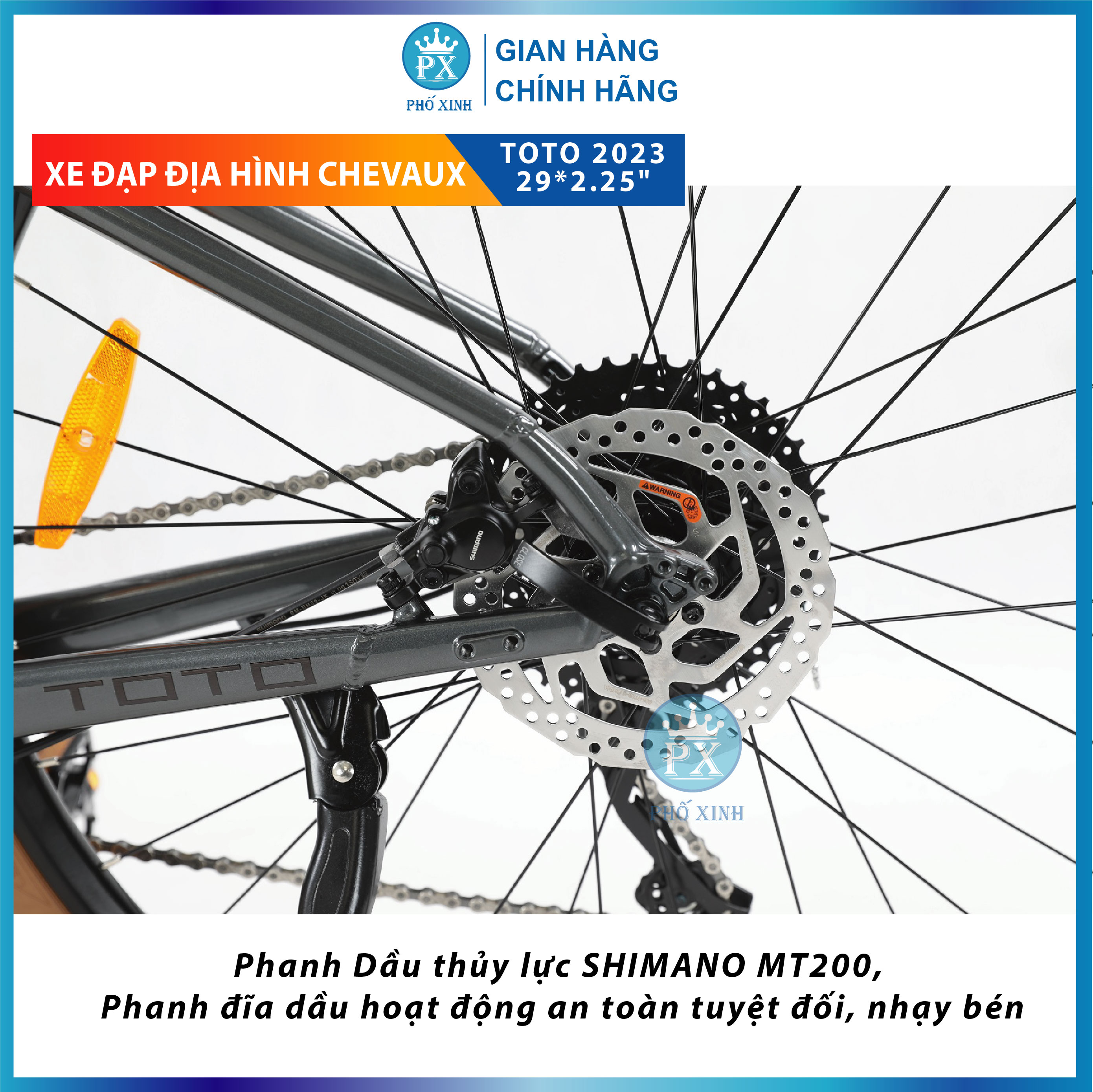 XE ĐẠP địa hình CHEVAUX TOTO 2023 CHEVAUX TOTO – Mẫu xe đạp địa hình “ngựa chiến” của sự đam mê. Với 1 vẻ đẹp mạnh mẽ, phong cách cùng cấu hình cực cháy đã giúp ToTo nhận được nhiều sự yêu thích, đánh giá cao của người dùng. Phiên bản 2023 của ToTo mang đến màu sắc tươi mới, đồng thời bộ líp được cải tiến giúp chuyển động nhẹ nhàng, mượt mà hơn Thông số kỹ thuật Model CHEVAUX TOTO Đùi đĩa P r o w h e e l 24/38T Size 16" Trục giữa Trục rỗng Trọng lượng 15.4Kg Moay ơ N O V A T E C bạc đạn Tem kiểm định BAA Nhật Bản Phanh Phanh dầu thủy lực S H I M A N O MT200 Khung Khung nhôm 6061 cao cấp không mối hàn, dây âm sườn Càng Phuộc SR S U N T O U R có khóa hành trình Xích KMC Lốp M a  x x  is ven vàng cổ điển 292.25" Tay đề S H  I M A N O Deore 5100 22s Vành Nhôm CHEVAUX 2 lớp 29" Củ đề S H I M A N O Deore 5120 11s Gạt đĩa S H I M A N O Deore 5100 2s Pô tang/ Ghi đông/ Cọc Yên Nhôm CHEVAUX Líp S U N  S H  I N E 11 tầng 42-11T Khung sườn nhôm cao cấp T6 (ALU6061) Khung sườn của dòng xe này có chất liệu từ hợp kim nhôm cao cấp cứng cáp T6, chắc chắn và trọng lượng nhẹ. Chiếc xe này phù hợp với các bạn trẻ có chiều cao khoảng 1m55 – 1m8. Lớp sơn tĩnh điện cao cấp giúp xe luôn trong trạng thái sáng bóng như mới, dễ dàng vệ sinh khi bám bẩn, khó bong tróc. Ghi đông tay ngang, tay nắm da mềm mại chắc tay Mẫu xe city bike này sở hữu ghi đông dạng thẳng cổ điển, dễ sử dụng, không chỉ đem lại cho xe bề ngoài gọn và đẹp mắt mà còn giúp xe dễ dàng di chuyển vào những con đường hẹp, hay nhiều chướng ngại vật như nhánh cây. An toàn di chuyển với bánh xe có nhiều gai Chiếc xe đạp này được trang bị bánh xe vơi lốp xe K e n d a  M a x x  i s ven vàng cổ điển 292.25. Ngoài ra, với vành xe là hợp kim nhôm 2 lớp Chevaux cứng cáp và nhiều gai, người dùng có thể yên tâm di chuyển trên những đoạn đường trơn trượt. Bộ đề S h i m a n o mạnh mẽ Bộ truyền động S H I M A N O Deore 5100 22s vận hành mượt mà, mạnh mẽ với 22 tốc độ giúp cho việc sang số trở nên dễ dàng và mượt mà, bộ líp 11 tầng S H I M A N O Deore 5120 11s bền bỉ, kết hợp với đùi đĩa S H I M A N O Deore 5100 2s cho khả năng vận hàng êm ái, dễ chịu, mang đến cho bạn sự an tâm và thoải mái khi trải nghiệm những cung đường mà bạn yêu thích. Phanh đĩa dầu hoạt động an toàn, nhạy bén  S h i m a n o MT200 hoạt động hiệu quả giúp người dùng dễ dàng điều chỉnh và kiểm soát tốc độ trên suốt chuyến hành trình của mình. Đảm bảo an toàn cho bản thân và những người xung quanh.  thoải mái Yên được làm nệm mút cao cấp, êm ái. Cọc yên hợp kim chắc chắn mang lại cảm giác thoải mái cho người đạp xe khi di chuyển những cung đường dài, gập ghềnh.  Bên cạnh vẻ ngoài năng động, xe đạp thể thao đường phố Chevaux Toto còn sở hữu dàn cấu hình rất chất lượng và một mức giá rất tốt, đảm bảo tính ổn định, vững chãi để người dùng có thể vi vu dạo mát, đi học, đi làm mỗi ngày. Đây chắc chắn là mẫu xe tuyệt vời dành cho các bạn trẻ thích vu vi dạo phố, đi làm, đi học, rèn luyện sức khỏe. TẠI SAO NÊN MUA XE ĐẠP TẠI PHỐ XINH? CỬa hàng Phố xinh là NPP xe đạp cho các thương hiệu hàng đầu như Giant, TWITTER, Califa Catani, Vicky, Chevaux, Calli, Catani… Phố Xinh không chỉ bán sản phẩm, chúng tôi muốn làm tốt hơn qua 04 việc sau: Hướng khách hàng đến lựa chọn phù hợp nhất Có trách nhiệm đảm bảo sản phẩm đến tay khách hàng là c h í n h h ã n g. Tiết kiệm chi phí cho khách hàng qua việc tối ưu chuỗi cung ứng. Tiếp thu nhanh và xử lý đến cùng các sự cố về SP    #xedap #xediahinh #xedaptreem #xeđạp #xeđạpvicky #vicky #catani #xeđạp22 #xeđạpchobé3tuổi