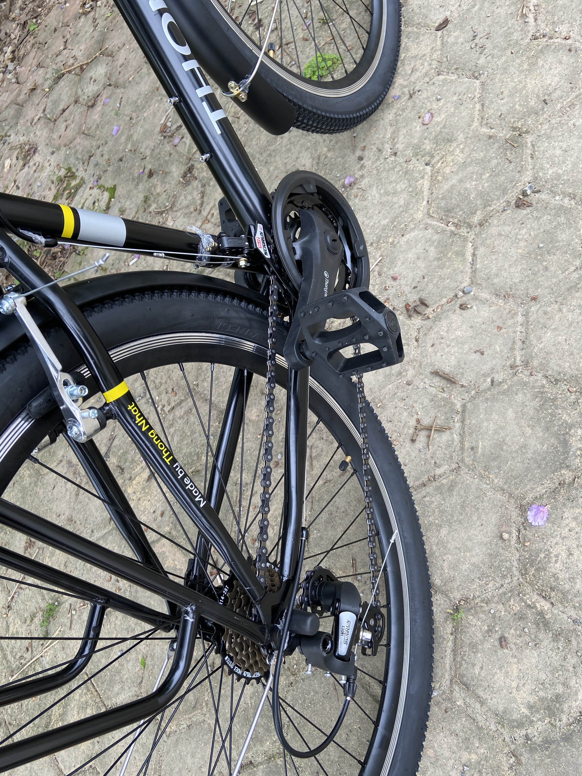 CÁC THÔNG TIN XUẤT XƯỞNG- TEM CHỐNG HÀNG GIẢ-PHIẾU BẢO HÀNH=>ĐẢM BẢO HÀNG CHÍNH HÃNG TỚI TAY NGƯỜI TIÊU DÙNG THÔNG SỐ KỸ THUẬT Cỡ khung: 26" Khung sườn: Thép cao cấp, sơn nước tĩnh điện Màu sắc: Đen mờ Phuộc: Thép Đề trước: Đài Loan Đề sau: Đài Loan Đĩa xích: 3 tầng Xích: 92 mắt Líp: tầng Yên: da bền đẹp Bàn đạp: Nhựa PVC trục thép Xuất xứViệt Nam Hãng sản xuấtThống Nhất Cỡ bánh: 26 inch Kích thước: 1730x600x990 Trọng lượng: 16.5kg
