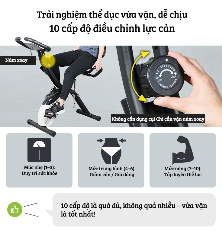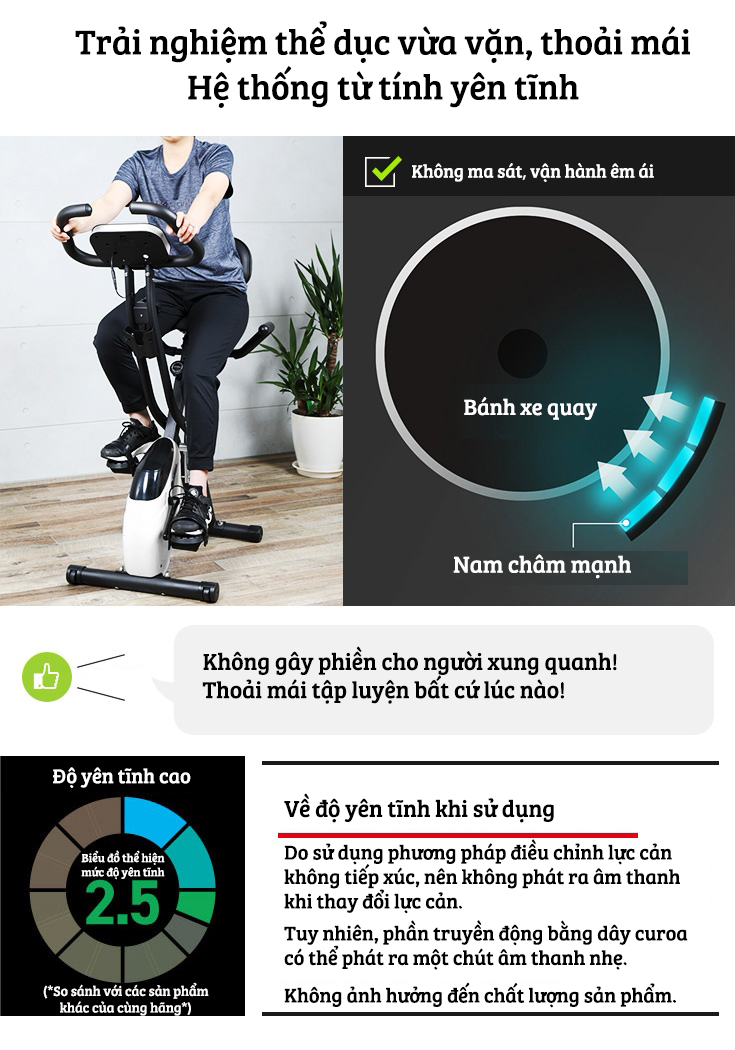 XE ĐẠP THỂ DỤC kháng lực từ êm ái, nhỏ gọn tiết kiệm không gian
