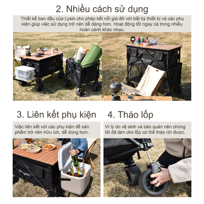 ✨Xe kéo dã ngoại, ngoài trời, du lịch, cắm trại, picnic, đa năng bánh xe rộng có khóa cố định dung thích 230l gấp gọn
