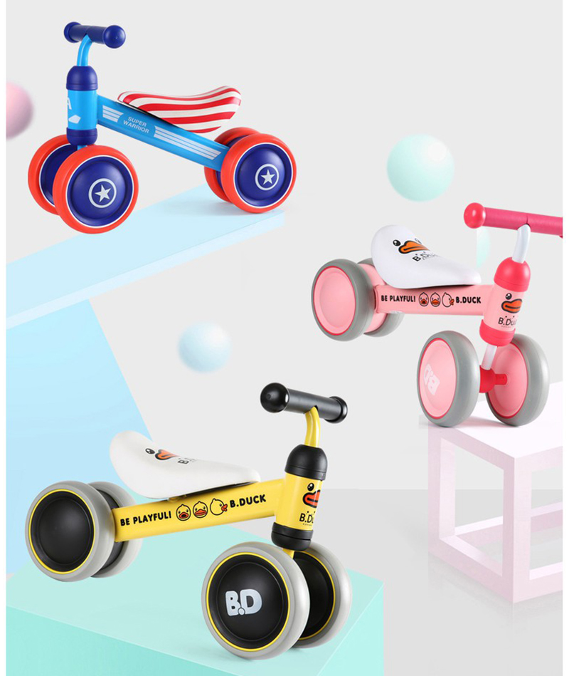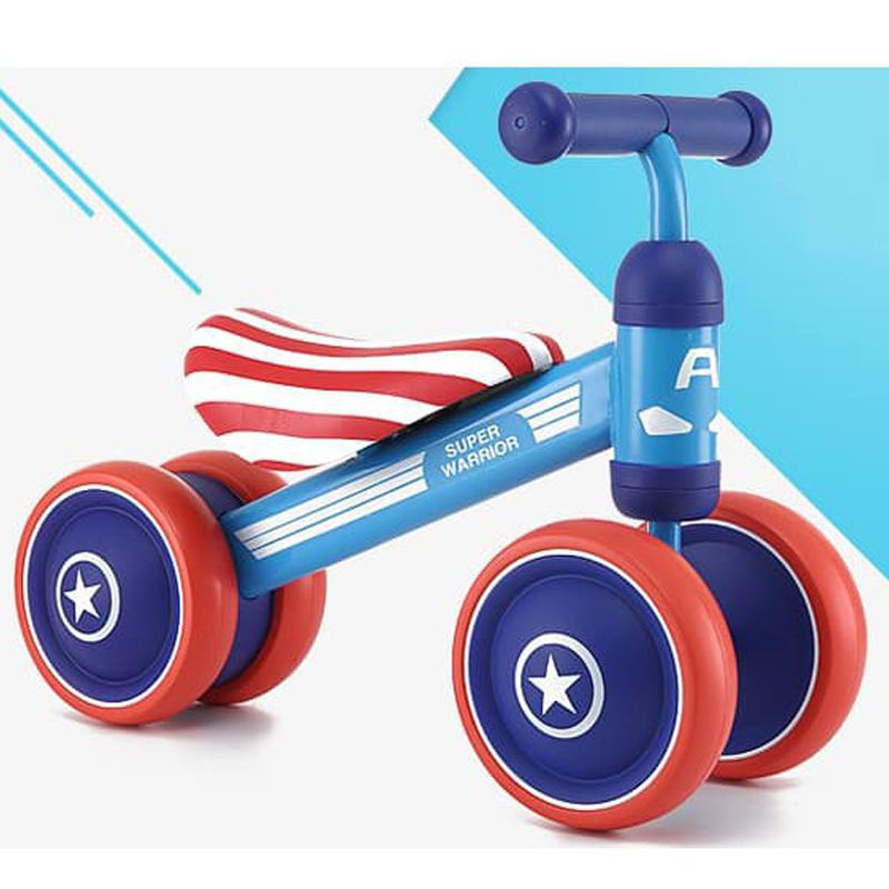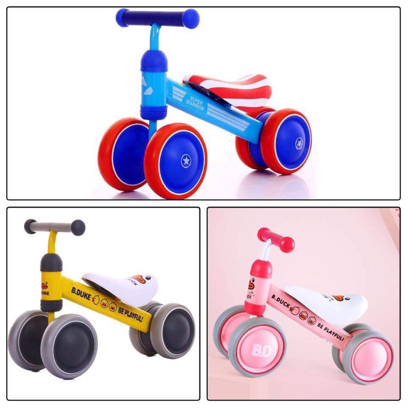 - Với 3 màu có sẵn, bố mẹ có thể dễ dàng lựa chọn phù hợp với sở thích, tính cách của con: Màu xanh kết hợp đỏ dành cho bé trai thích đội trưởng Mỹ Bản Lĩnh (Captain America) Màu vàng tinh nghịch khỏe khoắn cho bé. Màu hồng nữ tính đáng yêu cho bé gái. Chất liệu an toàn, thiết kế ngộ nghĩnh: – có thiết kế khung xe bằng kim loại không gỉ bền chắc theo thời gian sử dụng. Bề mặt xe nhẵn mịn, sơn phủ không độc hại với các góc cạnh bo tròn không sắc nhọn, không làm ảnh hưởng đến sức khỏe của trẻ. – Bánh xe được chế tạo từ nhựa đúc an toàn, cứng cáp với độ chịu lực cao, làm tăng thêm độ chắc chắn cho kết cấu xe. – Bánh xe và tay cầm bọc đệm mềm mại, êm ái, bảo vệ sức khỏe và tạo sự thoải mái khi bé lái xe. – Xe chòi chân Duke nổi bật với các màu sắc dễ thương, điệu đà và hình ảnh chú vịt ngộ nghĩnh, màu xanh sọc cờ, in trên trục lái và yên xe, chắc chắn sẽ khiến bé vô cùng thích thú khi vui chơi. Di chuyển an toàn, thoải mái: – có thiết kế ghế ngồi dài bọc đệm mềm mại mang lại cho bé cảm giác thoải mái và dễ chịu mỗi khi vui chơi. – Tay cầm vừa vặn, bọc lớp êm ái chống trơn trượt, được thiết kế nằm ngang, tương thích với chiều cao yên giúp bé điều khiển chuyển hướng xe rất dễ dàng, từ đó tăng khả năng vận động và phản xạ linh hoạt của trẻ nhỏ. – Xe chòi chân kết cấu 4 bánh hoạt động trơn tru, đặc biệt chắc chắn hơn với bánh đúp phía sau. Vành bánh xe được làm từ nhựa đúc, lốp xe đặc, mềm, chống bị đâm thủng bởi các chướng ngại vật trên đường đi. Tăng khả năng vận động của bé: – Xe chòi chân là giải pháp tốt giúp bé phát triển khả năng vận động ngay từ những năm tháng đầu đời. Thông qua động tác đẩy chân, sự điều hướng của đôi tay bé không chỉ được hỗ trợ phát triển thể lực, sự dẻo dai của hệ xương khớp mà còn rèn luyện cho bản thân khả năng nhanh nhạy, nhạy bén, từ đó tác động tích cực tới sự phát triển của tư duy và não bộ sau này. – Với Xe chòi chân – Tập cân bằng 4 bánh cao cấp, giờ đây bé cùng bạn bè có thể cùng nhau tạo nên một cuộc đua gay cấn để có được những giờ phút vui chơi vận động thật thư giãn và sảng khoái. Thông tin kích thước: – Kích thước xe (D x R x C): 50 x 21 x 35 cm. – Đường kính bánh xe: 15 cm – Chiều cao yên ngồi: 21 cm – Chiều dài tay cầm: 21 cm.