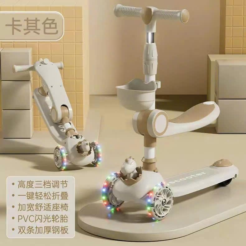 ✨Xe trượt scooter cho trẻ em có đèn, ghế ngồi 2in1 có giỏ đồ mẫu mới - Xe đồ chơi cho bé