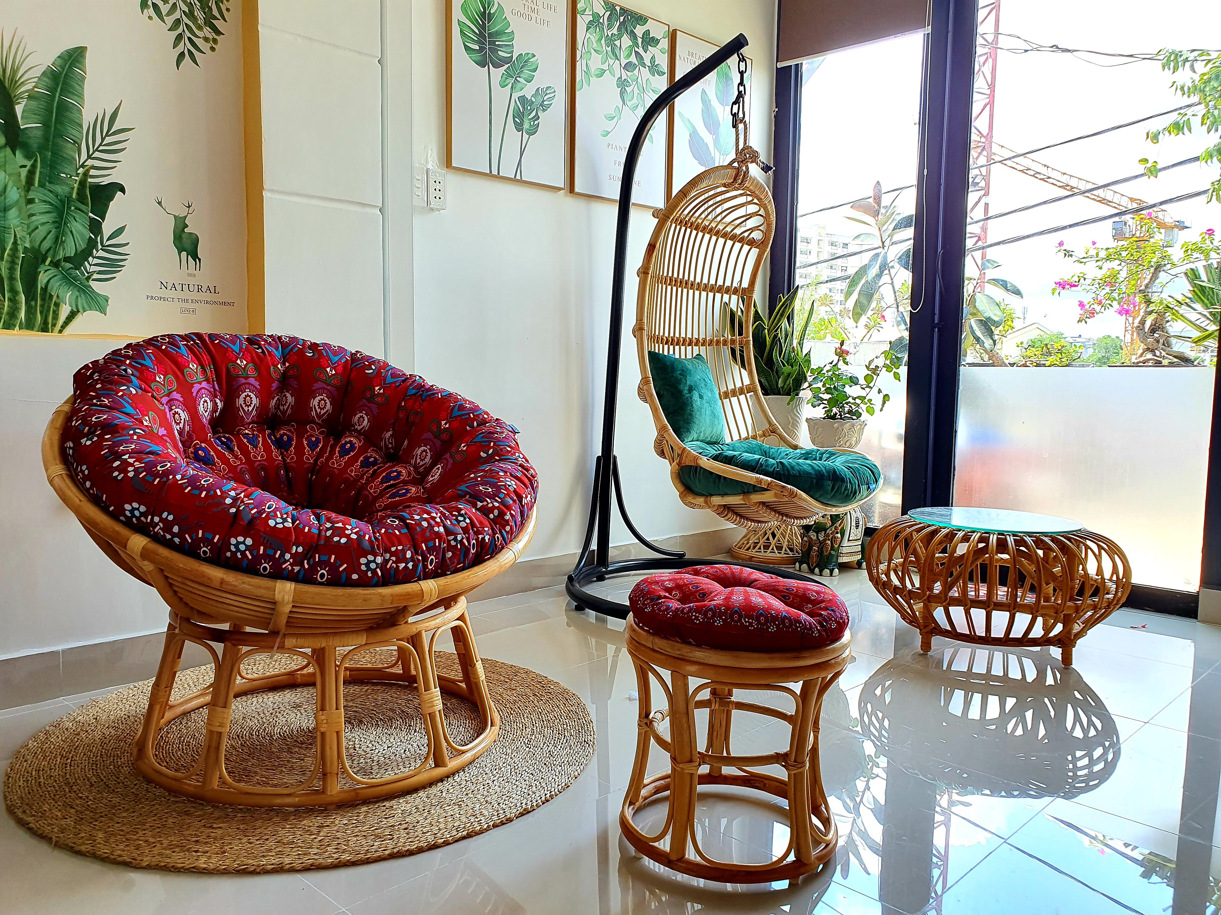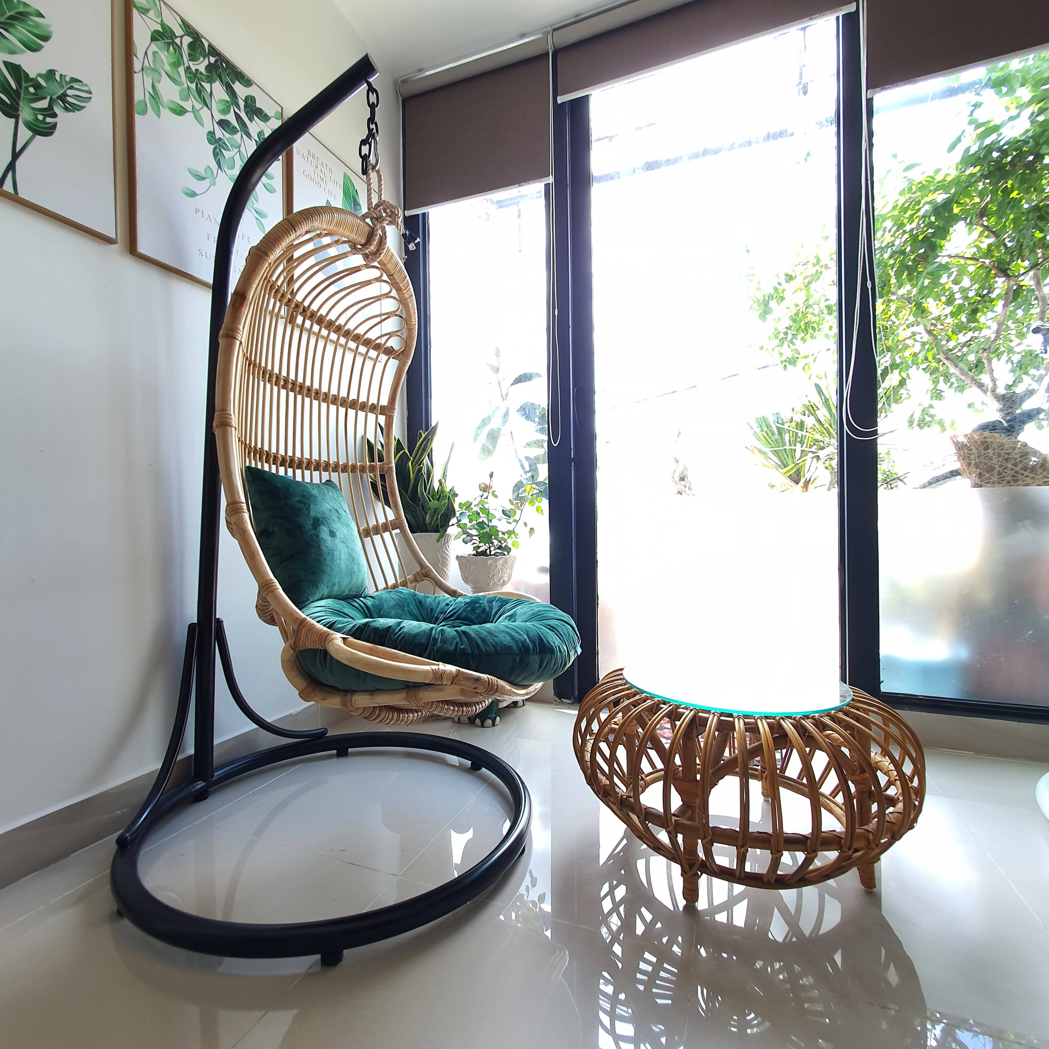 Bộ sản phẩm gồm : 01 xích đu mây + chân sắt + Bộ nệm như hình ảnh mô tả Với đồ nội thất làm từ mây tre đan bạn có thể bày trí ở