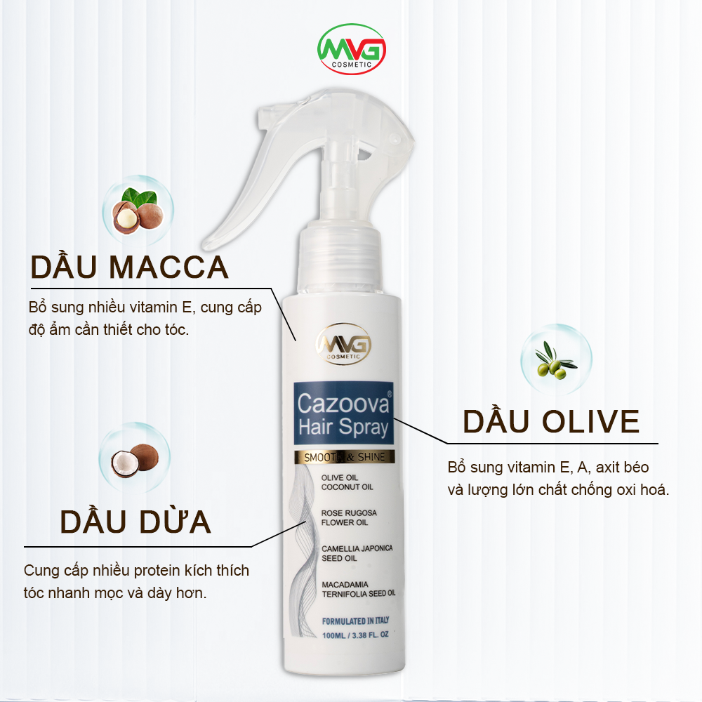 XỊT DƯỠNG TÓC HƯƠNG NƯỚC HOA CAZOOVA HAIR SPRAY 100ML - Formulate: Italy - Thương hiệu: Cazoova - Dung tích: 100ml THÔNG TIN CHI TIẾT: *** Xịt dưỡng tóc hương nước hoa Cazoova Hair Spray