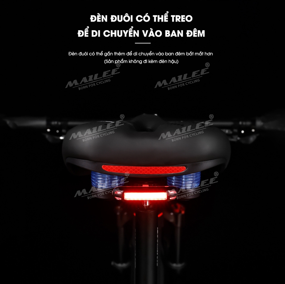- Dải phản quang phía sau (khi đèn pha rọi phía sau, dải phản quang này sẽ phát sáng lên) để đảm bảo an toàn khi đạp xe ban đêm
