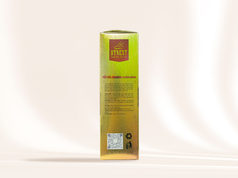 THÔNG TIN SẢN PHẨM Tổ yến chưng nhân sâm DT NEST Khánh Hòa kết hợp 25% Yến nguyên chất làm từ Sợi Yến Thật 100% Nhân sâm được xem là sản phẩm bồi bổ sức khỏe nhanh chóng, kết hợp với tổ yến DTNEST Khánh Hòa thì chẳng khác nào là sự kết hợp hoàn hảo giữa sâm và yến Mùi nhân sâm thơm lừng đặc trưng, sợi yến bổ dưỡng hoà quyện trong nước nhân sâm đã tiết ra, làm cho người dùng cảm giác sảng khoái và tỉnh táo hơn khi sử dụng THÀNH PHẦN: 25% tổ yến, đường phèn, nhân sâm, nước tinh khiết - Tổ yến: Bổ huyết, đẹp da, chống lão hóa