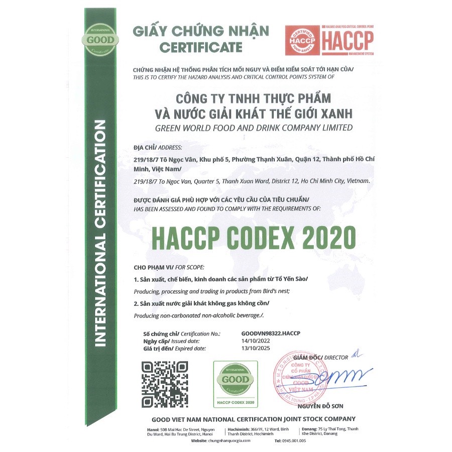 Nước Yến Sào Chưng Đường Ăn Kiêng - Yến Sào Hòn Gốm Khánh Hòa Thương hiệu đạt Top 10 Sao Vàng Thương Hiệu Quốc Gia 2024 Được chiết xuất từ 6g yến tươi nguyên chất,