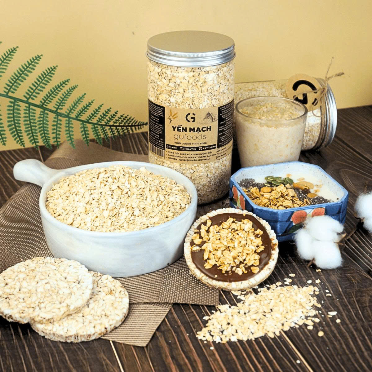 ✨Yến Mạch Tươi Cán Mỏng (Cán Dẹt) GUfoods 500g - Ăn Kiêng, Giàu Chất Xơ, Hỗ Trợ Giảm Cân, Tập Gym, Eat Clean