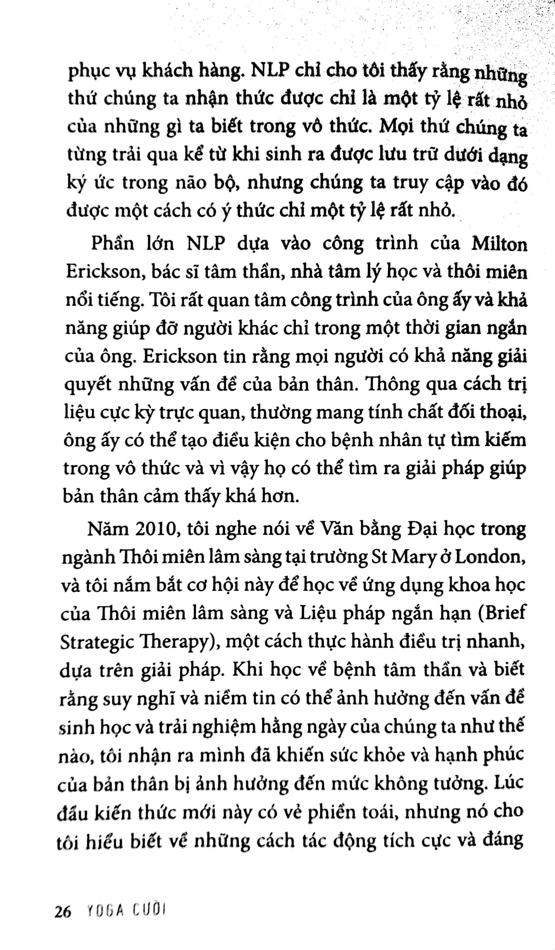 - Khía cạnh tinh thần của tiếng cười và cười có thể giúp đem lại ý nghĩa kết nối và viên mãn như thế nào Xuyên suốt cuốn sách Lesley tiết lộ cách đưa tiếng cười vào cuộc sống hằng ngày nhiều hơn, bao gồm những bài tập đơn giản nhưng vui nhộn sẽ giúp bạn nhìn ra cơ hội để cười ngay cả ở những nơi không ngờ nhất. Có thể cười giả như một bài tập thể dục theo nhóm; tiếp xúc bằng mắt và vui đùa như trẻ con, chẳng mấy chốc sẽ thành cười thật và lây lan. Cuốn sách này sẽ khai sáng, lẫn cung cấp kiến thức – nhưng quan trọng nhất là, sẽ làm thay đổi tích cực cuộc đời bạn. ‘Chìa khóa mở cánh cửa hạnh phúc là bắt đầu ở vị trí hiện tại của bạn, hôm nay. Từ đó chúng ta có thể học cách tiếp thu những thói quen khiến chúng ta cảm thấy hạnh phúc hơn và bền sức hơn. Cười vì vui vẻ hay cười để trở nên vui vẻ hơn thực sự không quan trọng, kết quả đều như nhau.’
