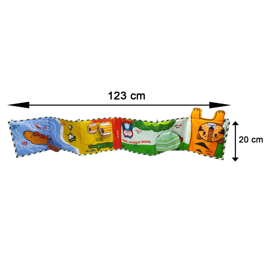 - Kích thước đồ chơi vải kiêm quây nôi: 20 x123 cm